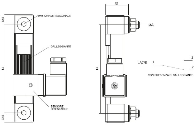 液面レベルの検知に加え、サーモスタットによる温度管理も可能な電磁機械式スイッチです。