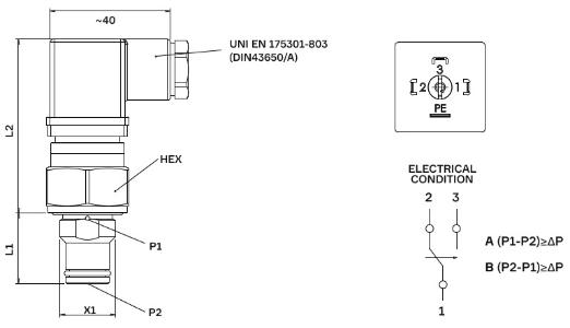 pressure switch SPDT DIN connector (cetop + G 1/4’’ F)