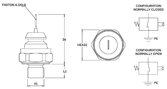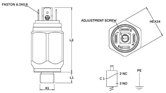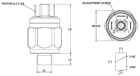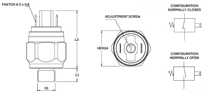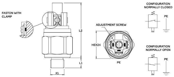 fixed setting pressure switch SPST earth return contact ≤ 48 V